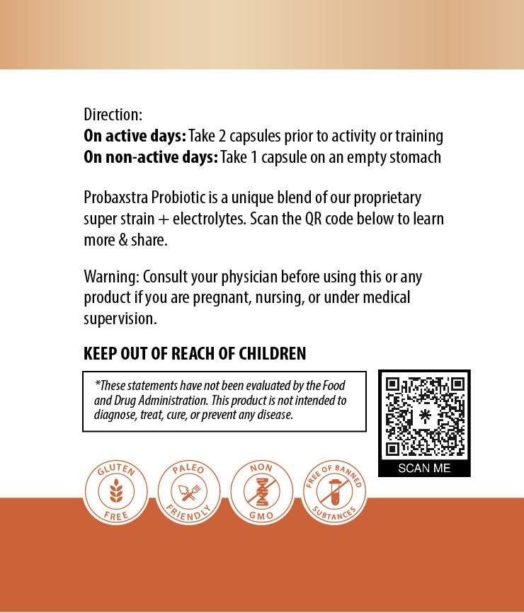 Probaxstra: The world's fastest probiotic. Our proprietary formulation includes a scientifically researched single strain probiotic that is shelf stable in its most bioavailable form for potent gut health support with performance benefits.